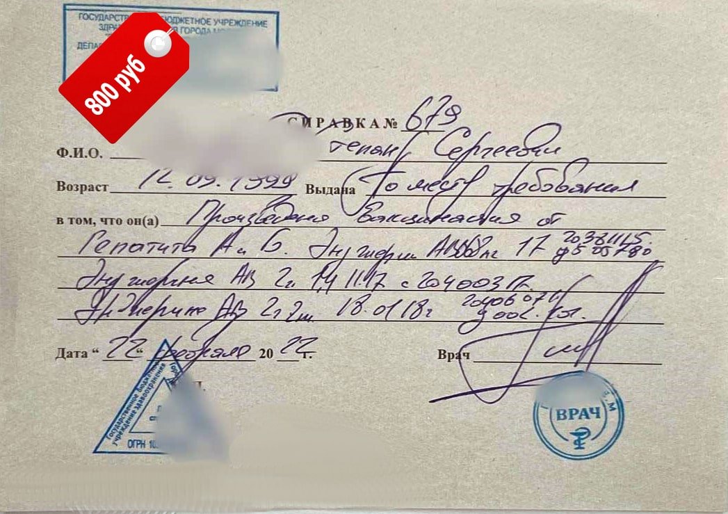 Если классическая схема через государственные медицинские учреждения кажется вам долгой и хлопотной, предлагаем купить справку о прививке от гепатита в Москве с доставкой дистанционно. Гепатит поражает печень. Он также может передаваться через кровь или половым путем. И самое опасное, что очень часто носитель болезни не знает о своем статусе. Именно поэтому профилактике болезни отводится так много усилий, а вакцинация является обязательной.