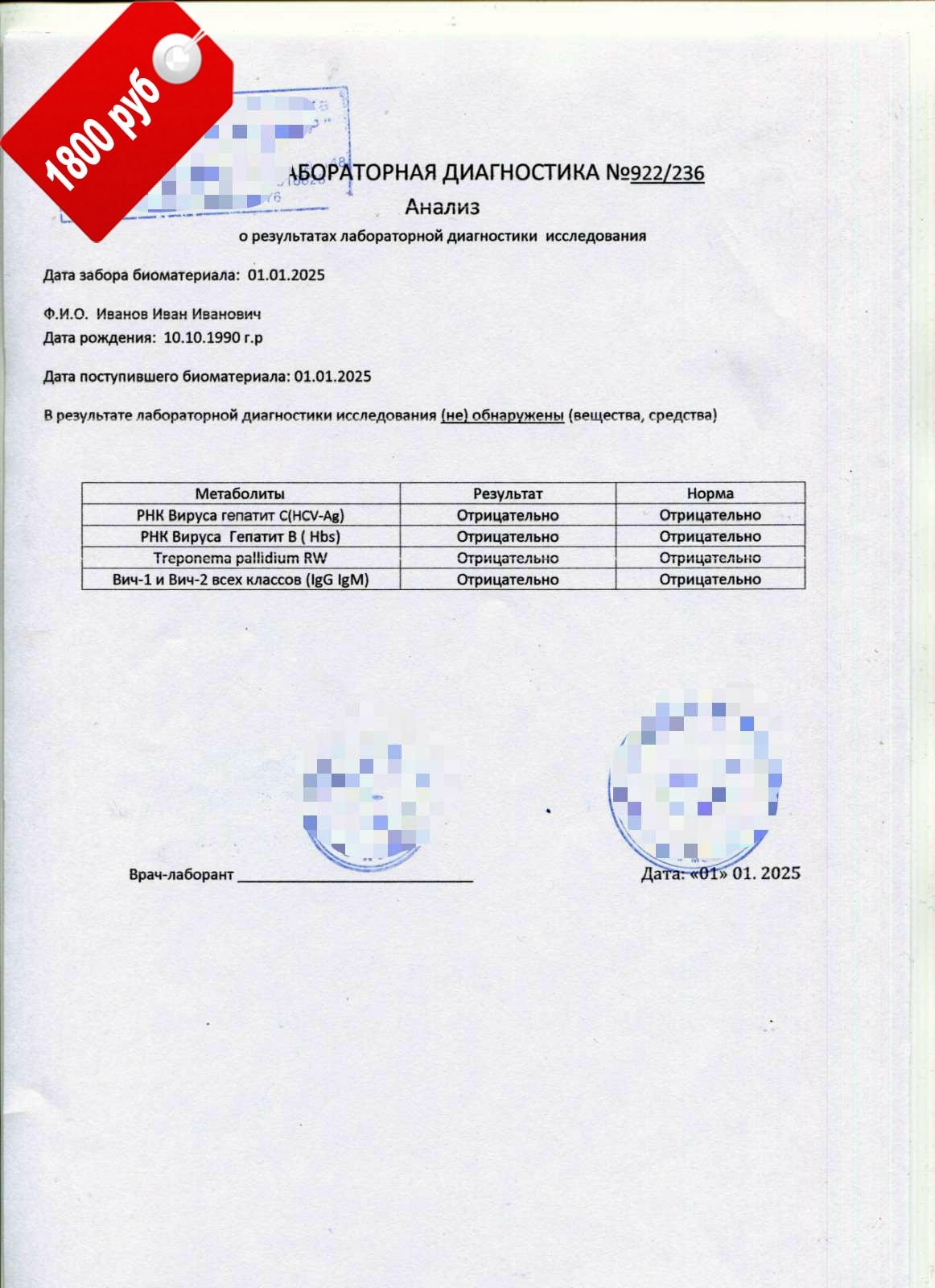 купить результаты анализа крови на ВИЧ, сифилис и гепатит B и C